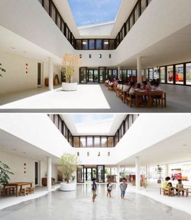 Детский сад, в котором дождевая вода собирается в своеобразную лужу, в которой потом резвятся детки