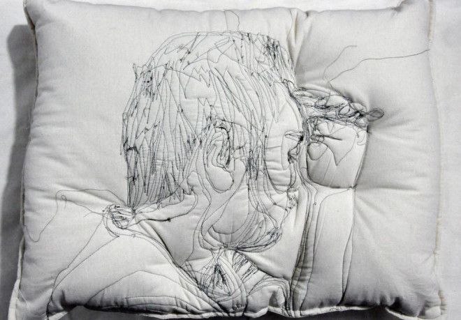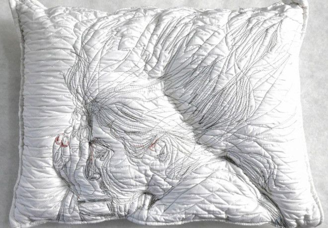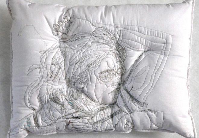 5. Спящие люди, вручную вышитые на подушках
