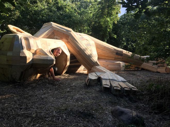 3. Дружелюбные гиганты из переработанной древесины в лесах Копенгагена