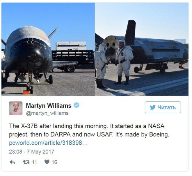 X-37B является беспилотной уменьшенной версией шаттла. Посадку он совершил на ВПП, которую раньше использовали корабли этой программы.