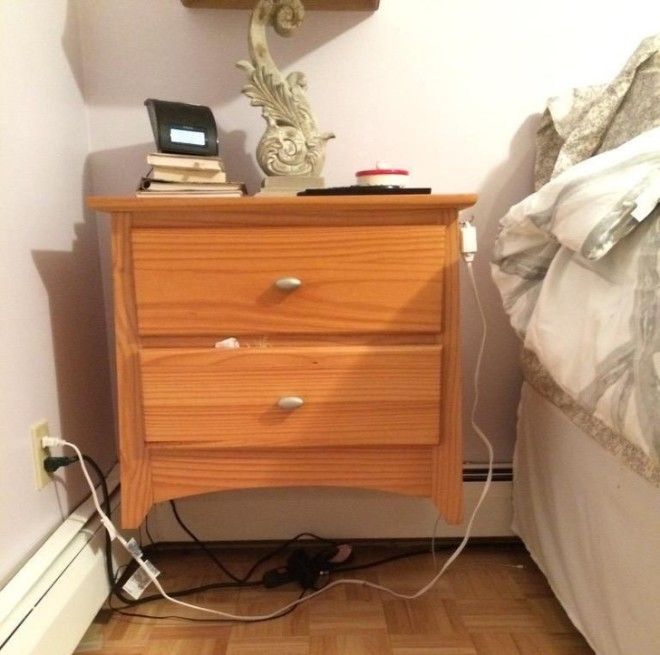«Родители купили новую кровать, и оказалось, что она намного выше папиной прикроватной тумбы. Его решение проблемы: прикрутить тумбу к стене»